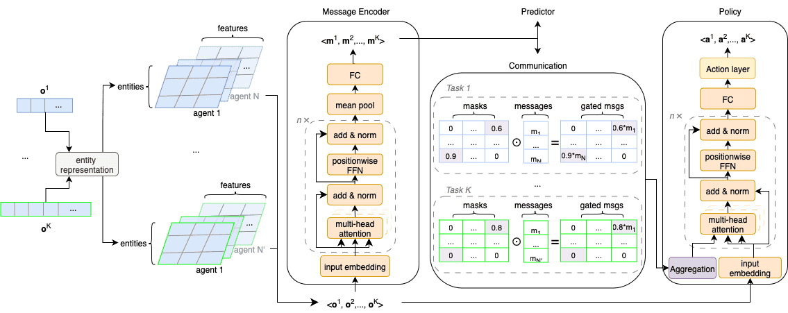 Learning Communication Skills in Multi-task Multi-agent Deep Reinforcement Learning